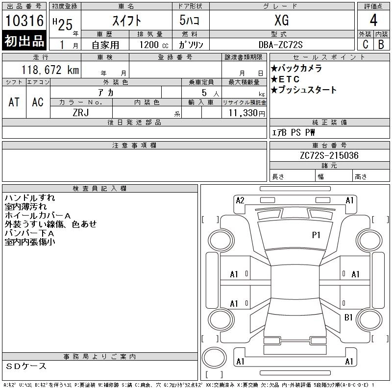 SUZUKI SWIFT 2013 г., лот № 10316