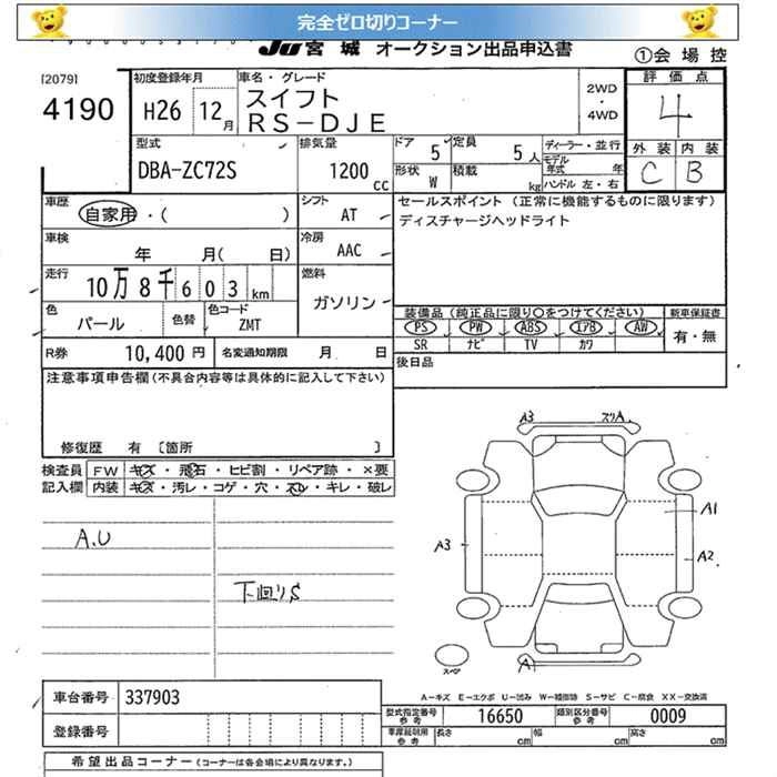 SUZUKI SWIFT 2014 г., лот № 4190