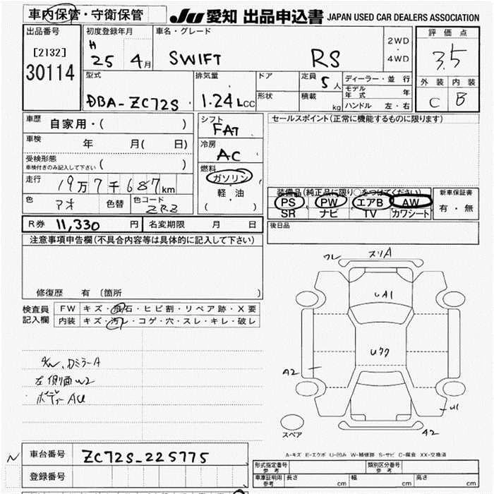 SUZUKI SWIFT 2013 г., лот № 30114
