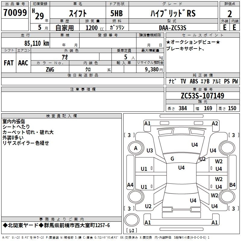 SUZUKI SWIFT 2017 г., лот № 70099