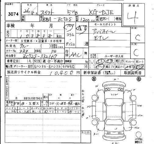 SUZUKI SWIFT 2014 г., лот № 3074