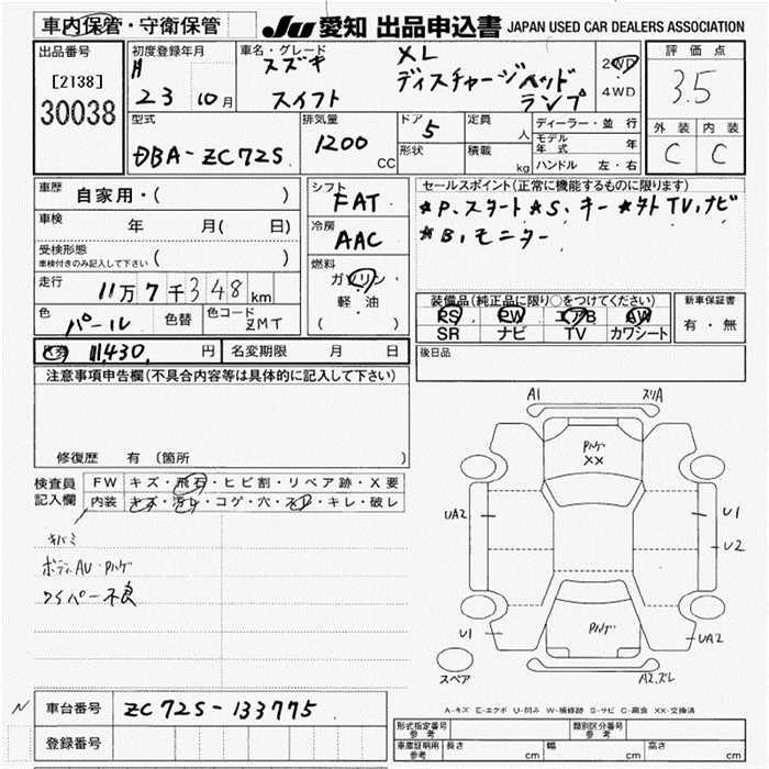 SUZUKI SWIFT 2011 г., лот № 30038