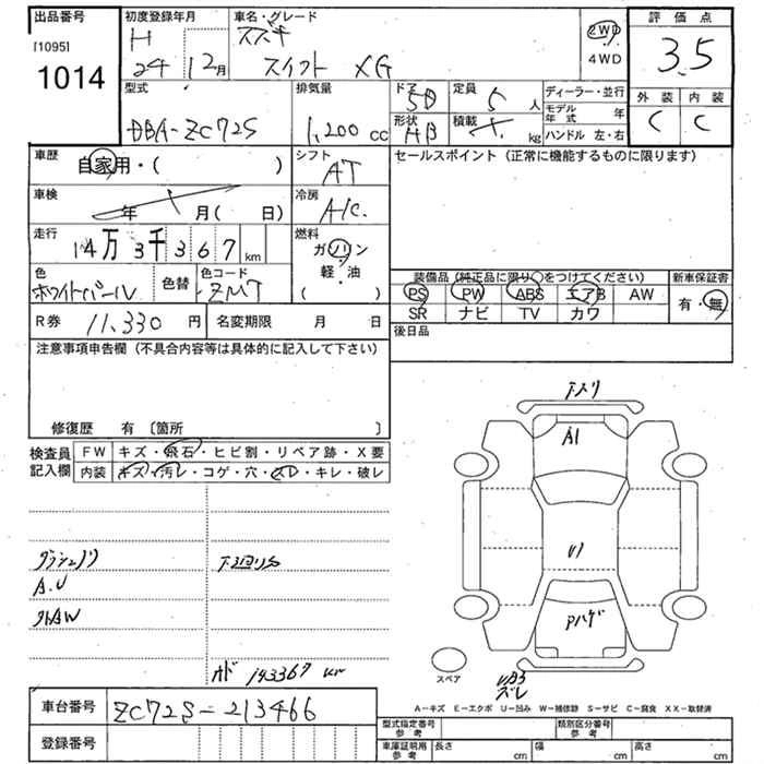 SUZUKI SWIFT 2012 г., лот № 1014