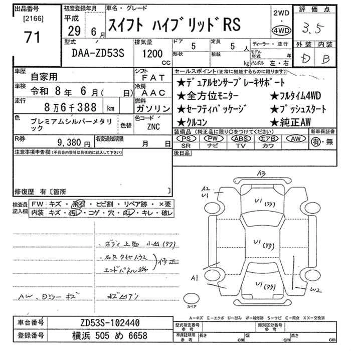 Год выпуска2017 Пробег 86 000 км КузовZD53S Комплектация4WD HYBRID RS