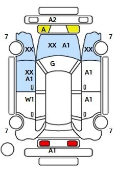 RXВосстановленная трещина на ветровом стекле (требует замены)