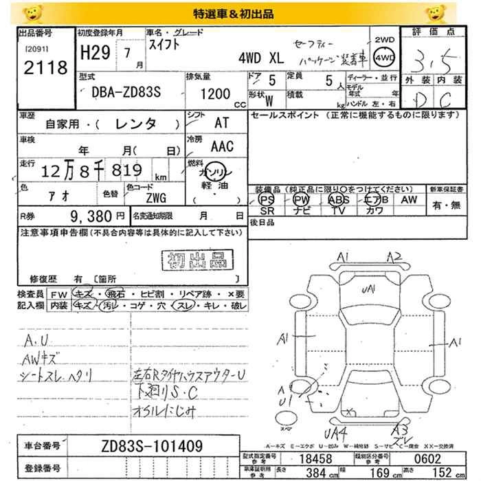 Год выпуска2017 Пробег 129 000 км КузовZD83S Комплектация4WD XL SAFETY PKGSOU TEA K CAR
