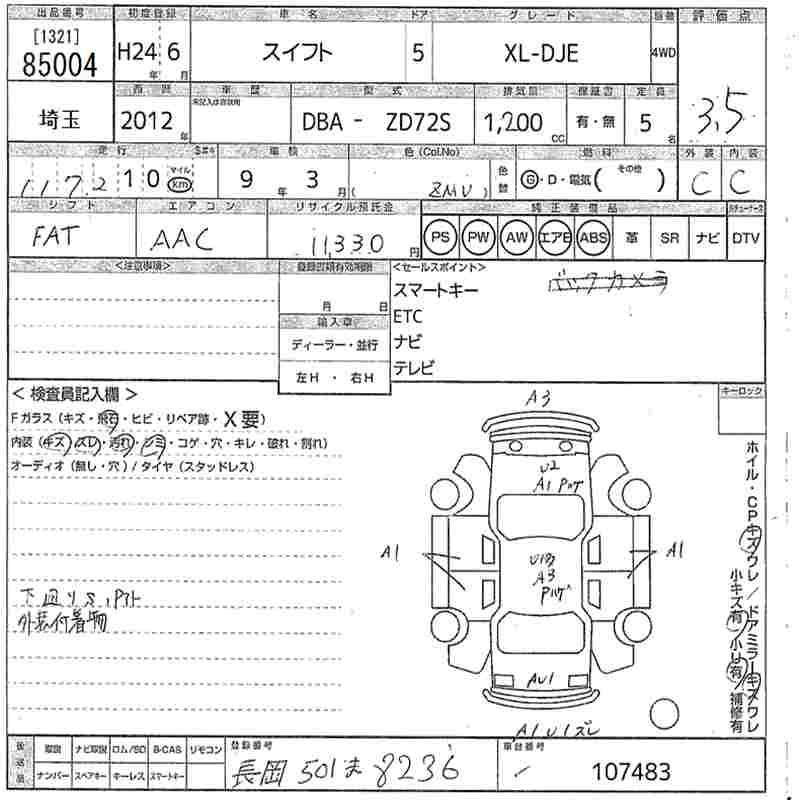 SUZUKI SWIFT 2012 г., лот № 85004