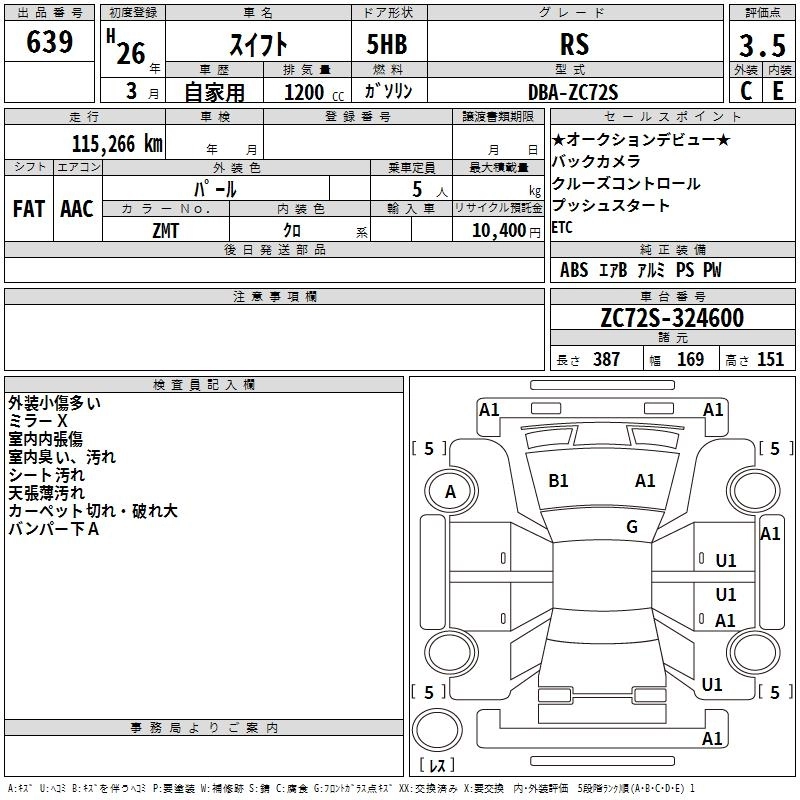 SUZUKI SWIFT 2014 г., лот № 639