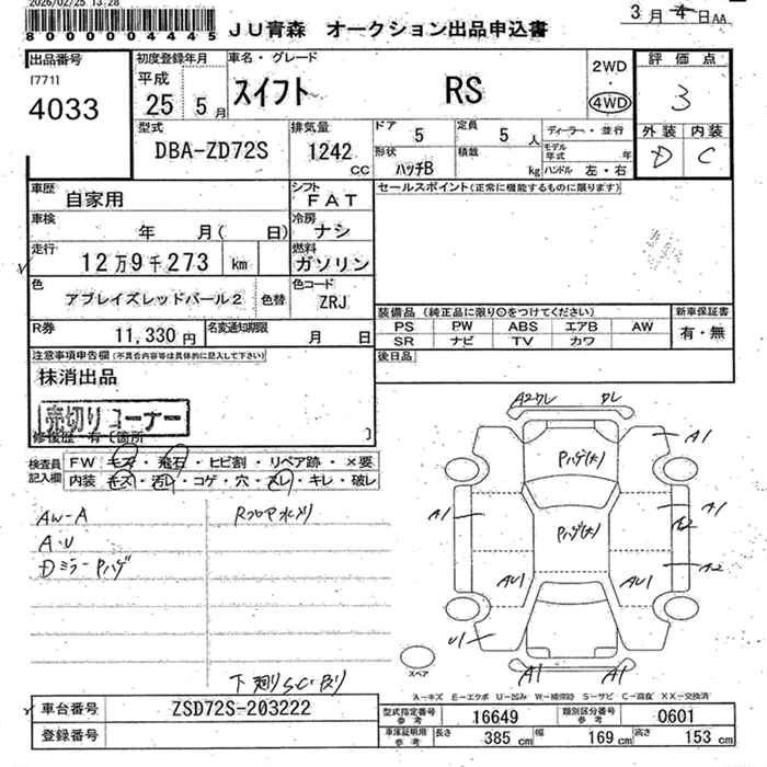 Статус выставлен на аукцион Лот 4033 Аукцион JU Aomori Дата аукциона 11.03.2026