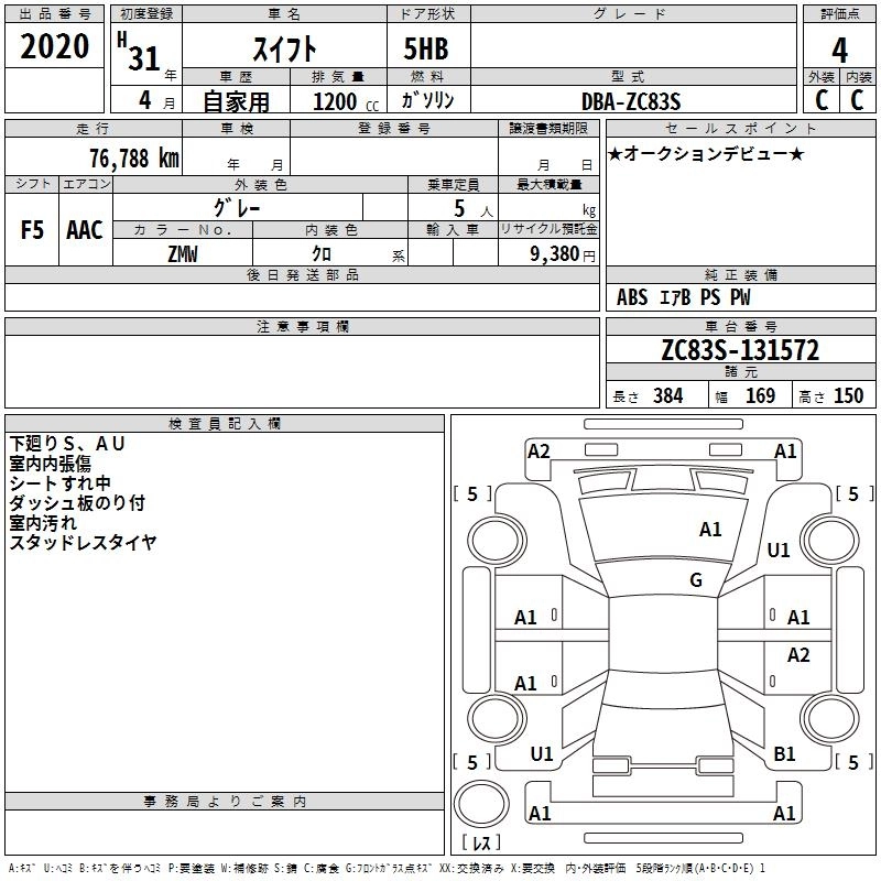 SUZUKI SWIFT 2019 г., лот № 2020