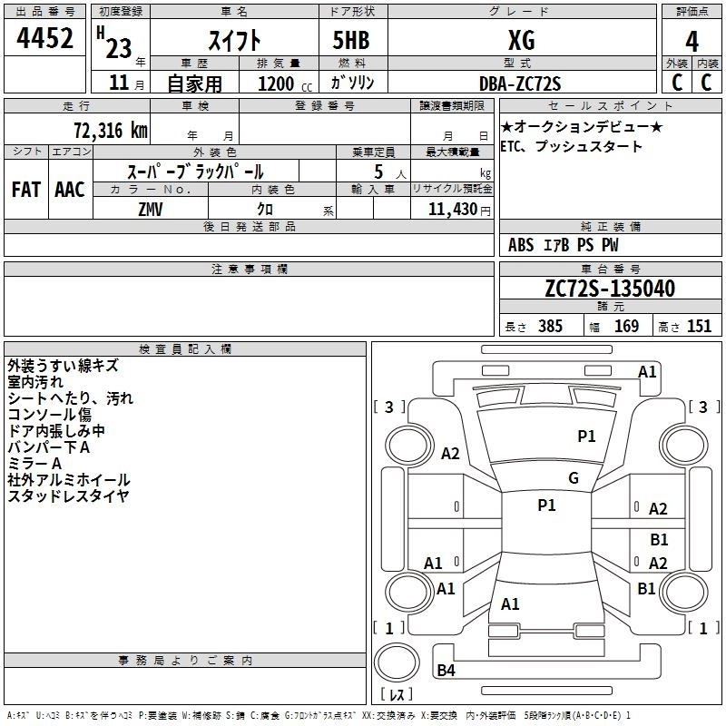 SUZUKI SWIFT 2011 г., лот № 4452