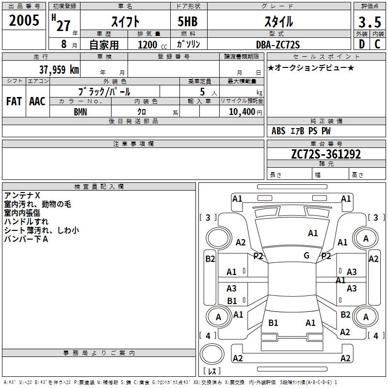 SUZUKI SWIFT 2015 г., лот № 2005