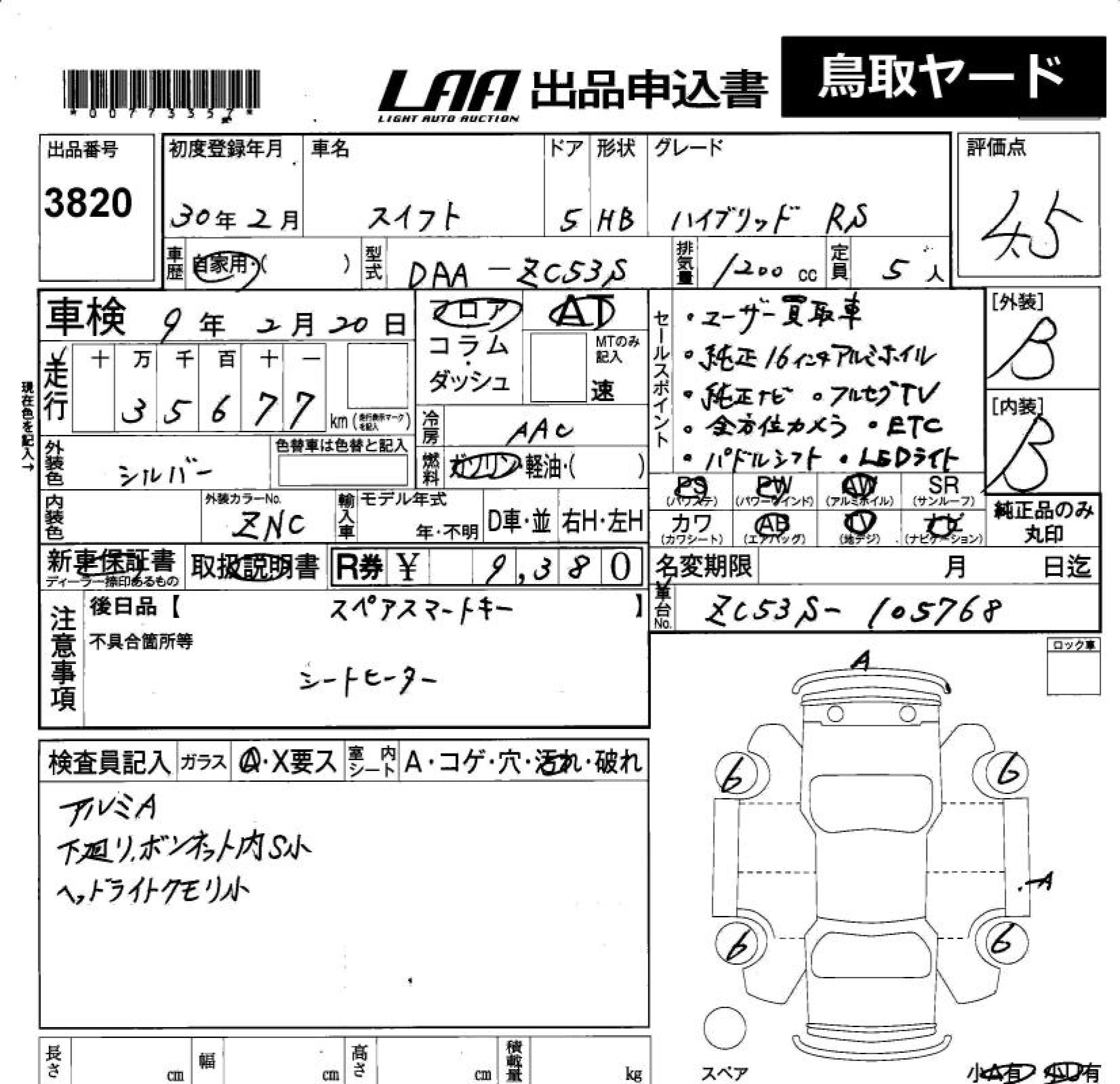 Статус выставлен на аукцион Лот 3820 Аукцион LAA Okayama Дата аукциона 13.03.2026