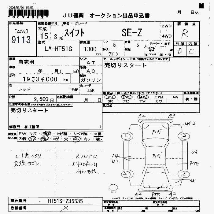 Статус выставлен на аукцион Лот 9113 Аукцион JU Fukuoka Дата аукциона 13.03.2026
