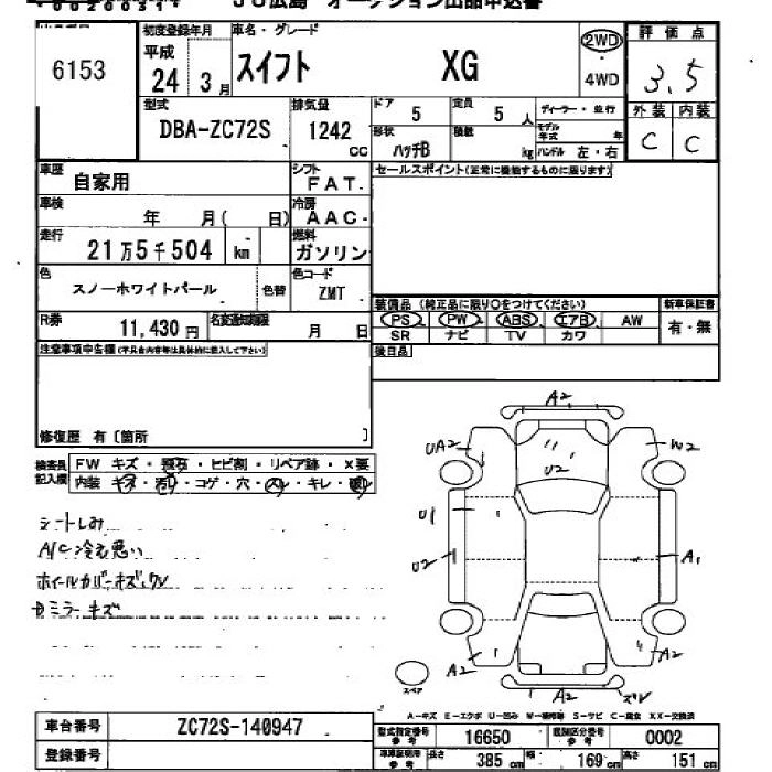 SUZUKI SWIFT 2012 г., лот № 6153