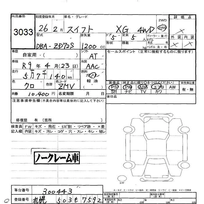 SUZUKI SWIFT 2014 г., лот № 3033