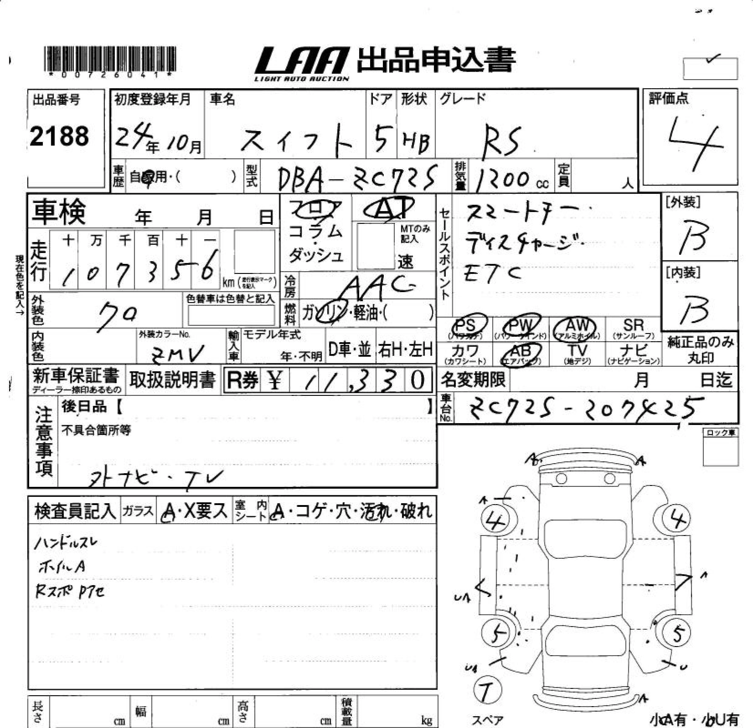SUZUKI SWIFT 2012 г., лот № 2188