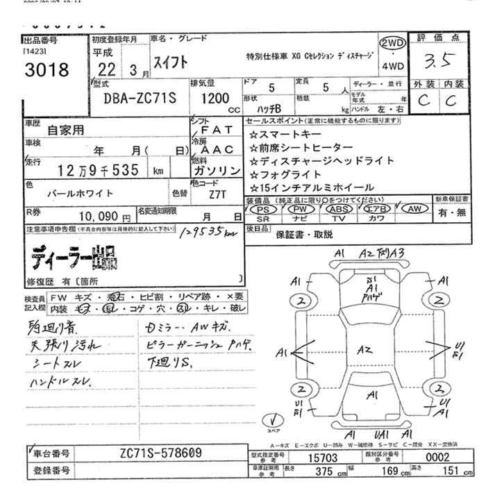 Год выпуска2010 Пробег 130 000 км КузовDBA-ZC71S КомплектацияXG C SELECTION TIS TEA -SI2WD
