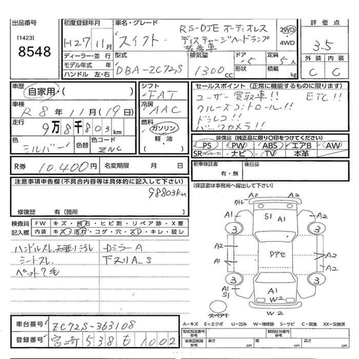 99 000 км КузовZC72S КомплектацияRS-DJE WITHOUT AUDIO HID (HIGH INTENSITY DISCHARGE) HEAD LIGHT LA