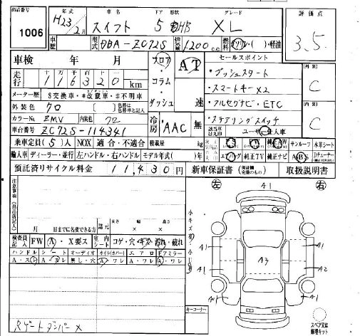 SUZUKI SWIFT 2011 г., лот № 1006