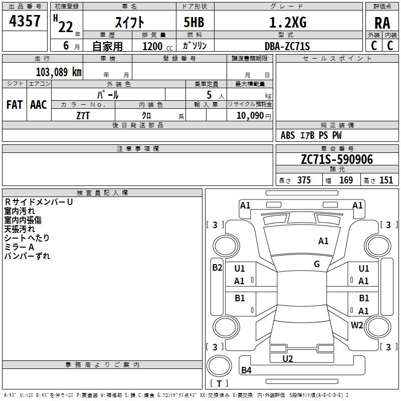 SUZUKI SWIFT 2010 г., лот № 4357