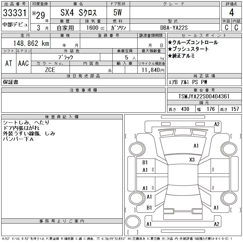 SUZUKI SX4 S-CROSS 2017 г., лот № 33331