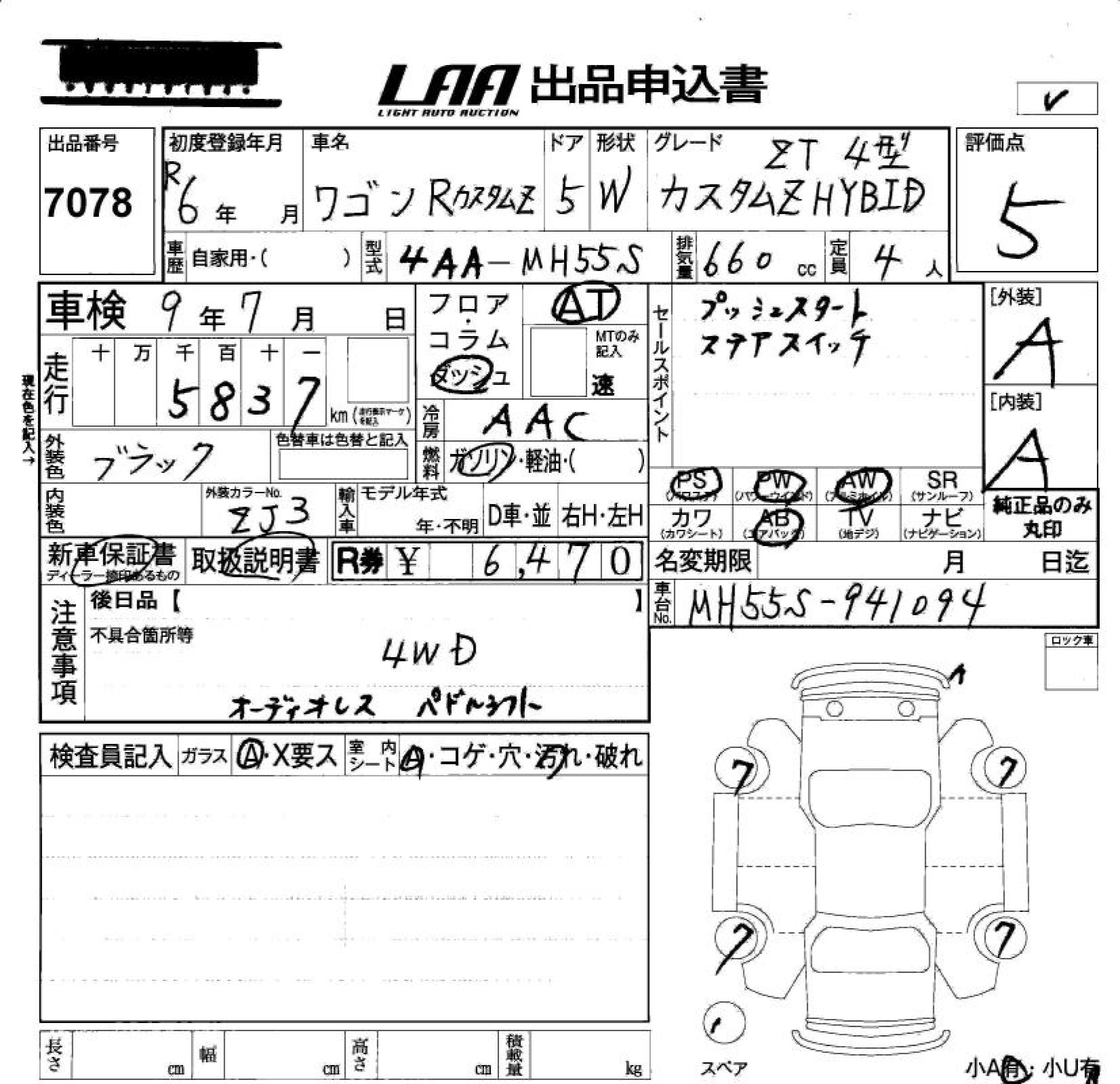 SUZUKI WAGON R CUSTOM Z 2024 г., лот № 7078