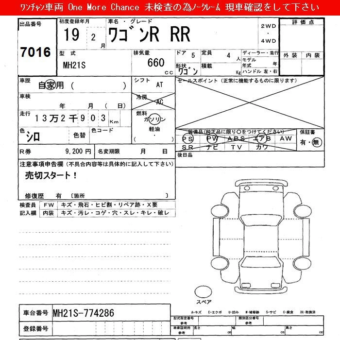 Статус выставлен на аукцион Лот 7016 Аукцион JU Shizuoka Дата аукциона 10.03.2026