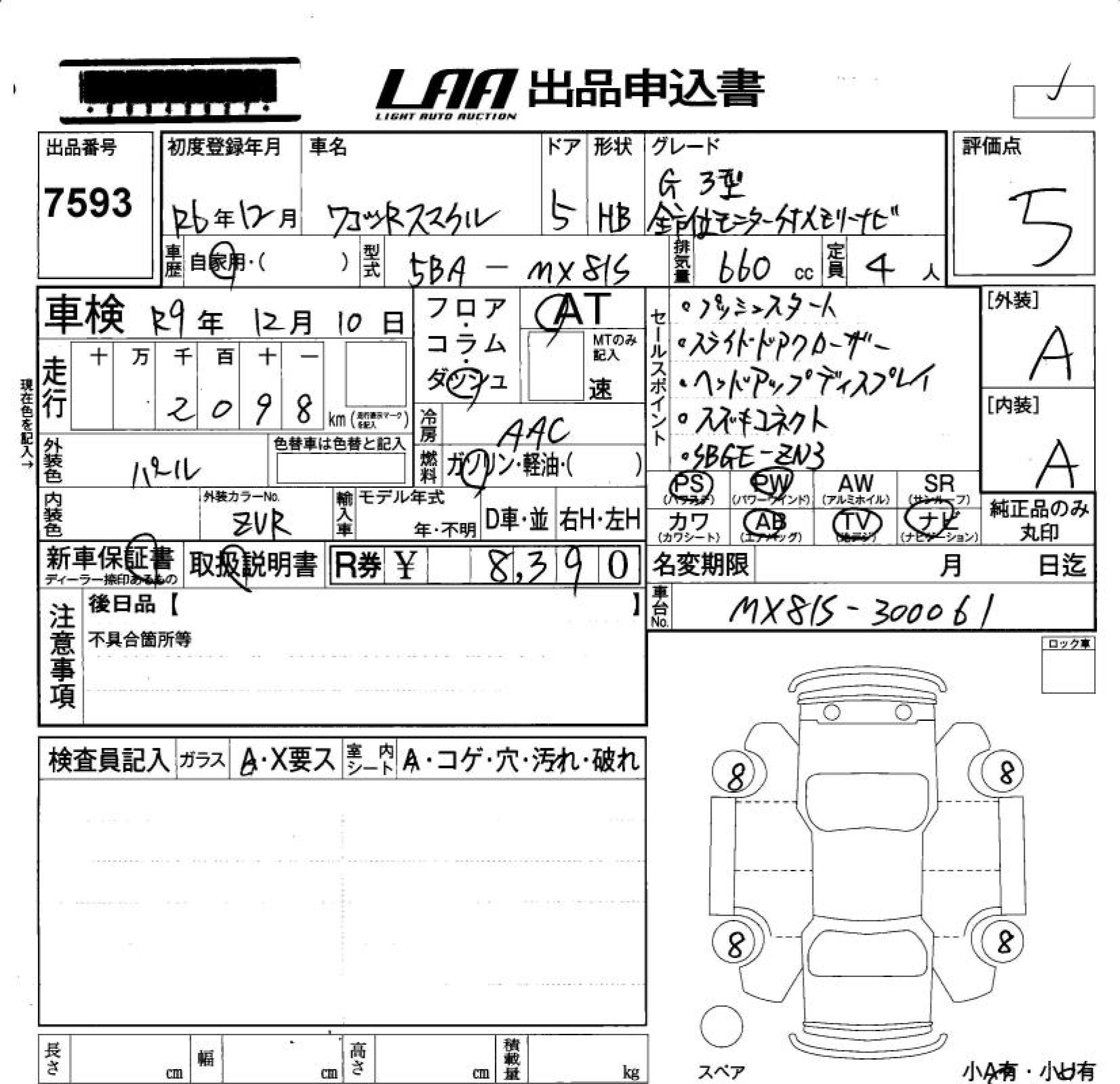 Статус продан Лот 7593 Аукцион LAA Okayama Дата аукциона 23.01.2026