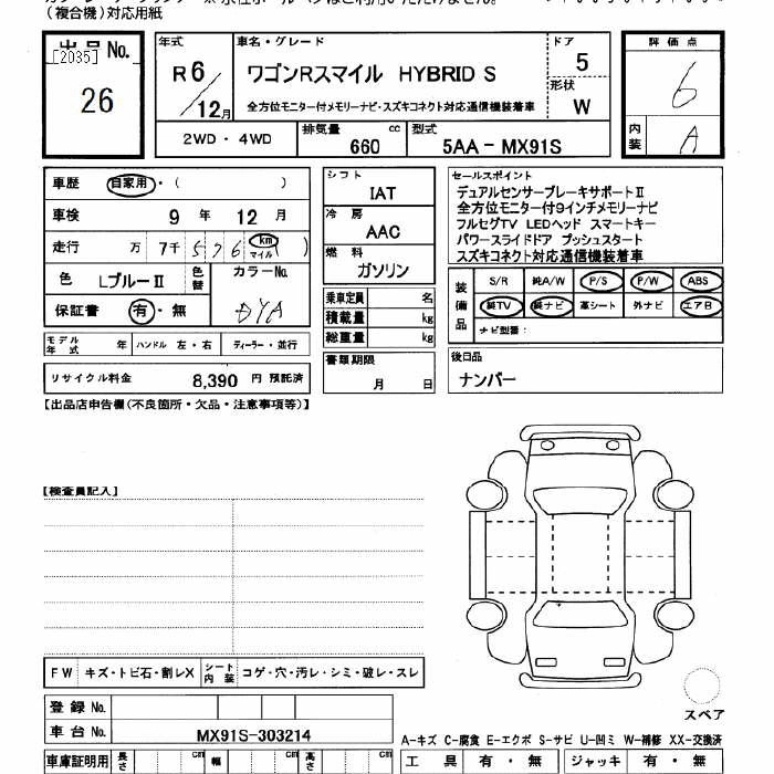 7 000 км КузовMX91S Комплектация HYBRID SZEN HOWE I MONITOR EXIST MEMORY NAVIGATION SO