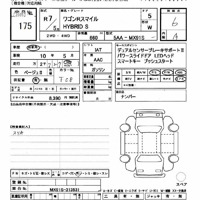 SUZUKI WAGON R SMILE 2025 г., лот № 175