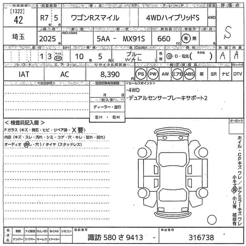 Год выпуска2025 КузовMX91S Комплектация4WD HYBRID S