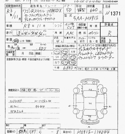 SUZUKI WAGON R SMILE 2021 г., лот № 1371