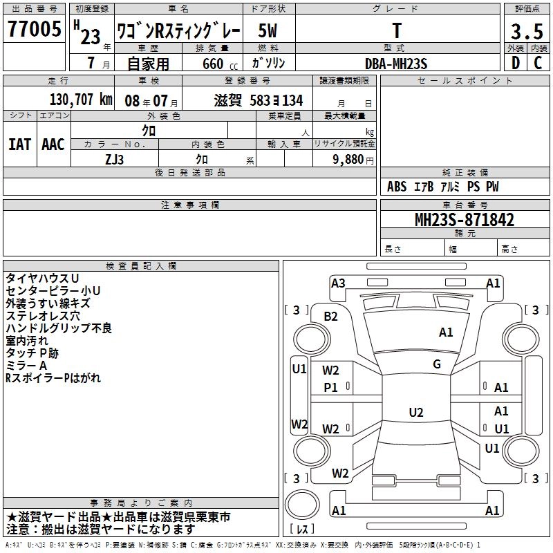 Год выпуска2011 Пробег 131 000 км КузовMH23S КомплектацияT