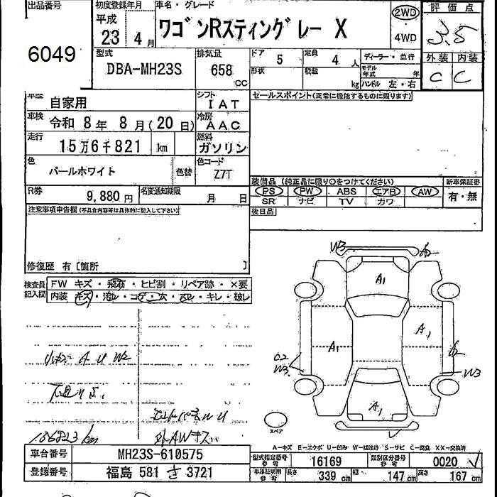 SUZUKI WAGON R STINGRAY 2011 г., лот № 6049