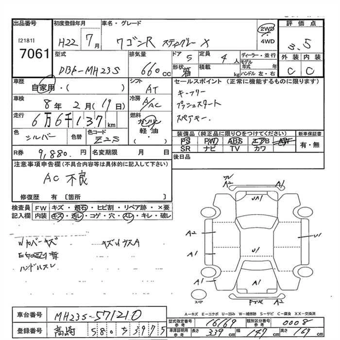 Год выпуска2010 Пробег 66 000 км КузовMH23S КомплектацияX
