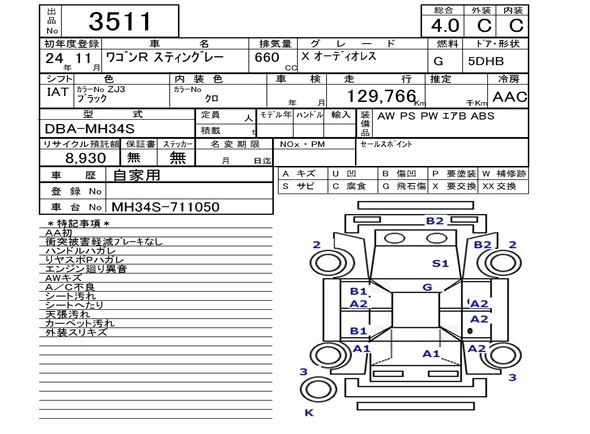 Год выпуска2012 Пробег 130 000 км КузовMH34S КомплектацияX WITHOUT AUDIO