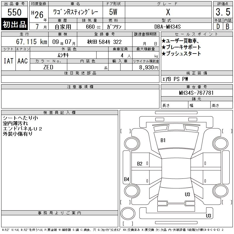 Год выпуска2014 Пробег 67 000 км КузовMH34S КомплектацияX