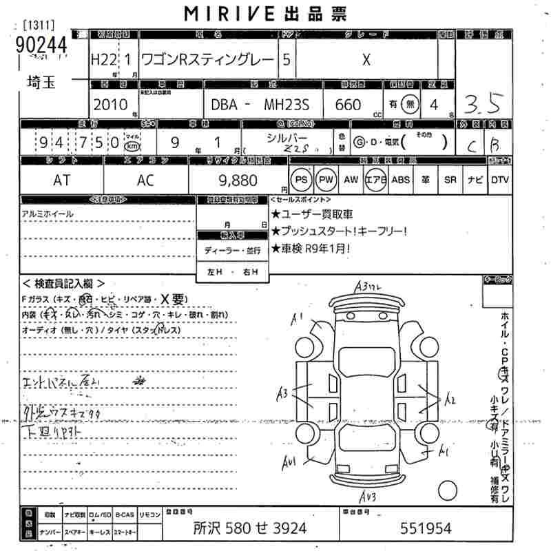 Статус продан Лот 90244 Аукцион MIRIVE Saitama Дата аукциона 24.12.2025