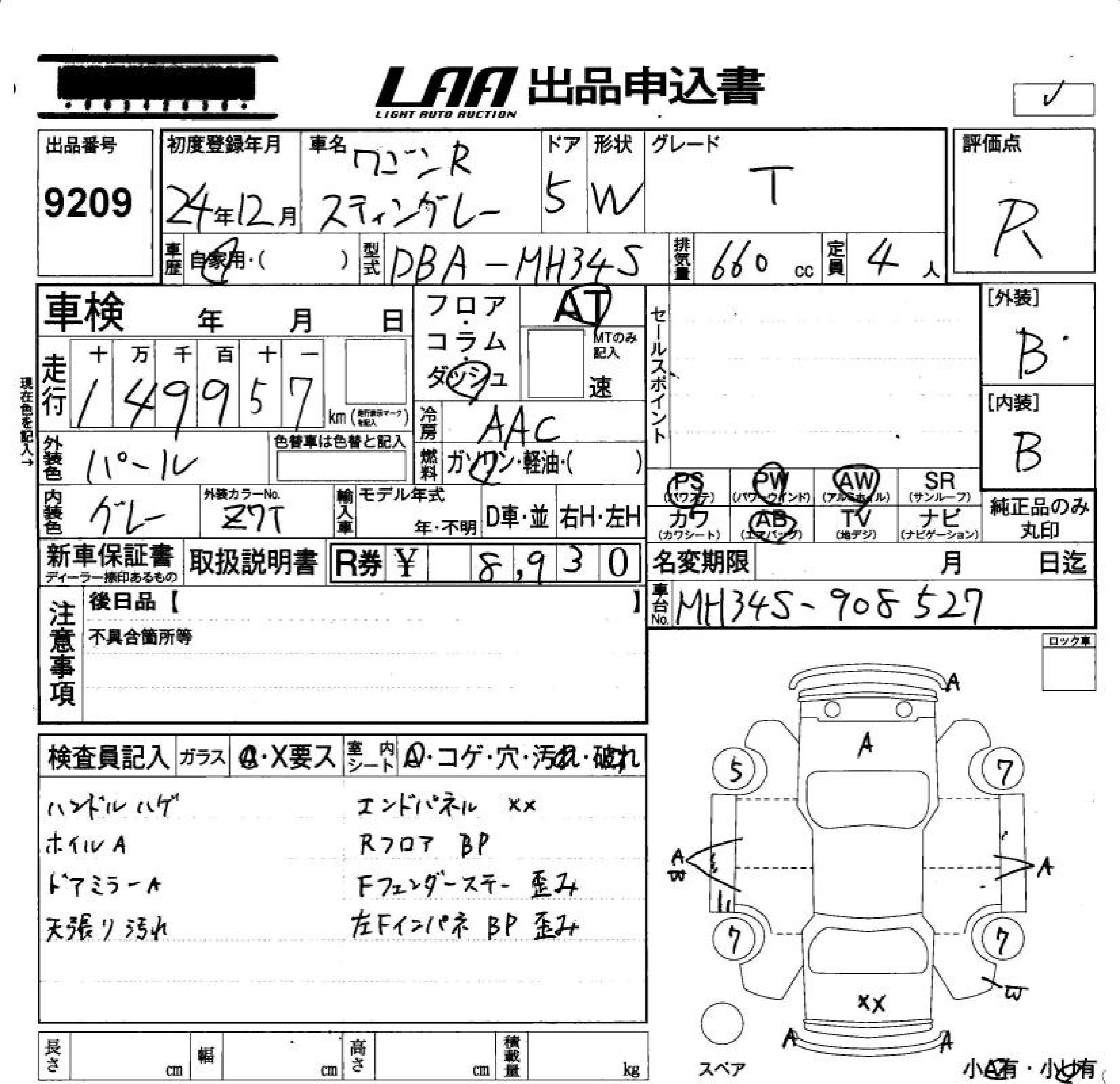 Статус продан Лот 9209 Аукцион LAA Okayama Дата аукциона 23.01.2026