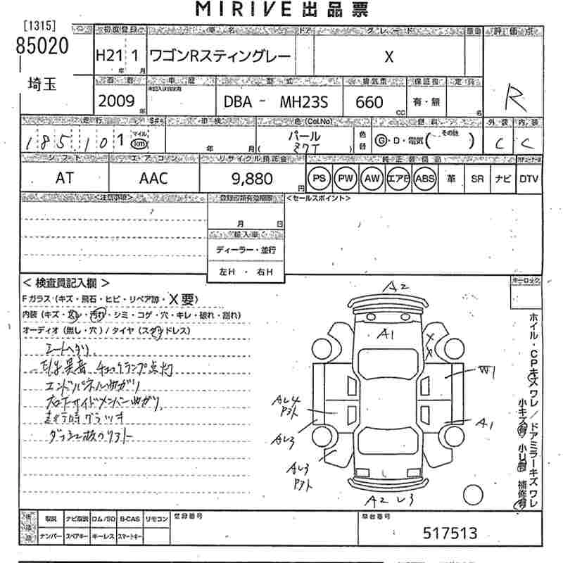 Статус выставлен на аукцион Лот 85020 Аукцион MIRIVE Saitama Дата аукциона 28.01.2026