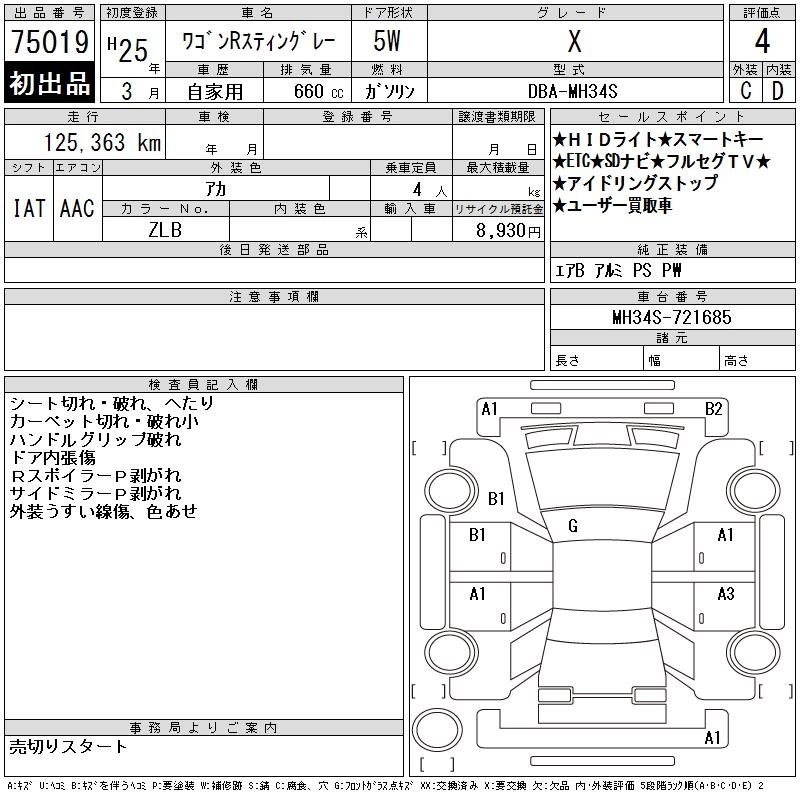 SUZUKI WAGON R STINGRAY 2013 г., лот № 75019