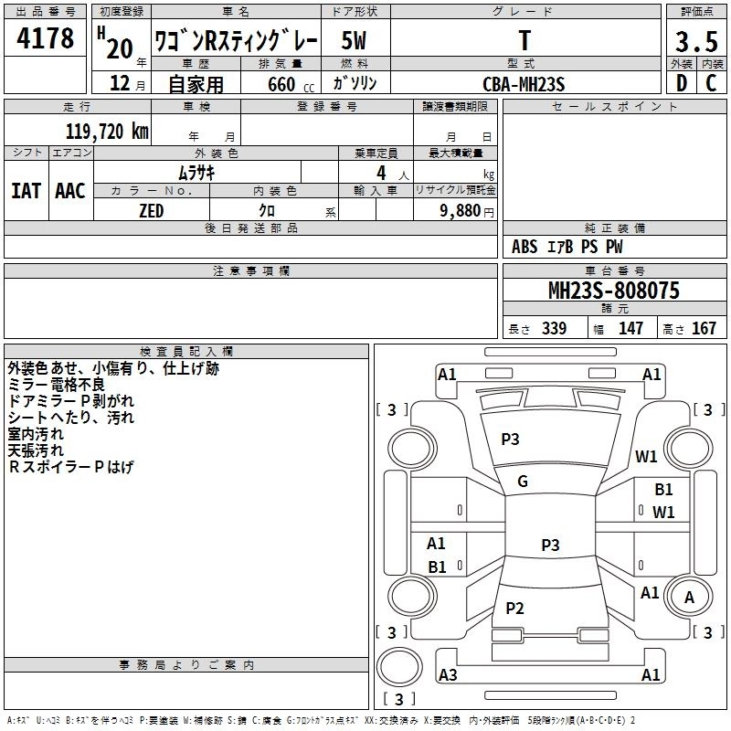 Год выпуска2008 Пробег 120 000 км КузовMH23S КомплектацияT
