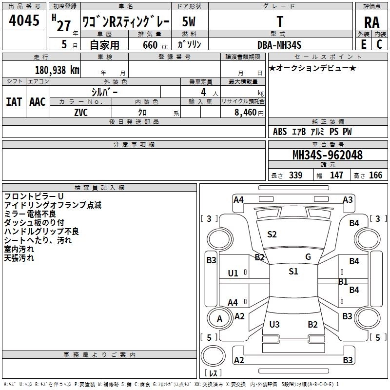 SUZUKI WAGON R STINGRAY 2015 г., лот № 4045