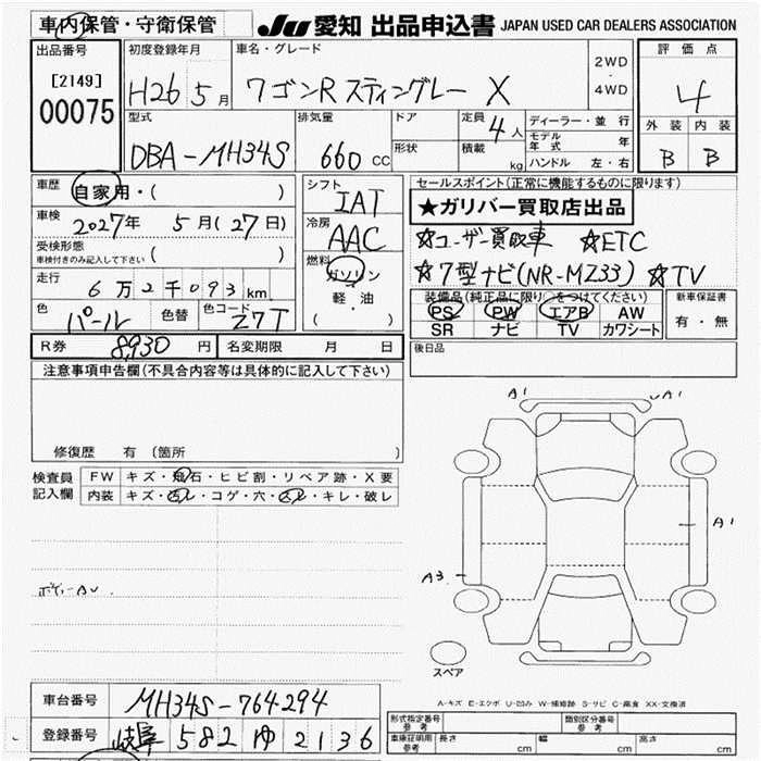 SUZUKI WAGON R STINGRAY 2014 г., лот № 75