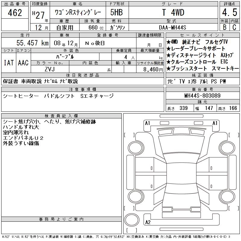 SUZUKI WAGON R STINGRAY 2015 г., лот № 462