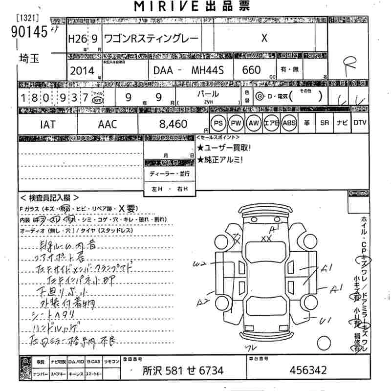 Статус выставлен на аукцион Лот 90145 Аукцион MIRIVE Saitama Дата аукциона 11.03.2026