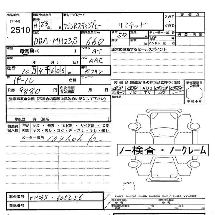 Статус выставлен на аукцион Лот 2510 Аукцион JU Oita Дата аукциона 11.03.2026