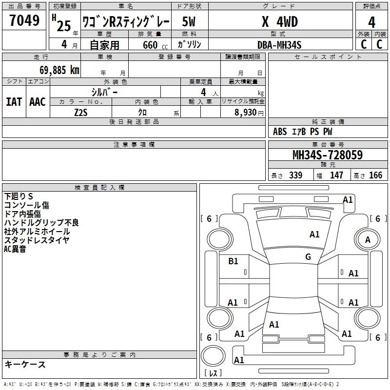 SUZUKI WAGON R STINGRAY 2013 г., лот № 7049
