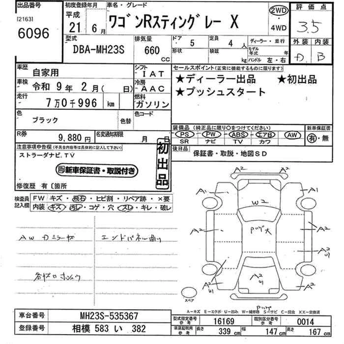 SUZUKI WAGON R STINGRAY 2009 г., лот № 6096